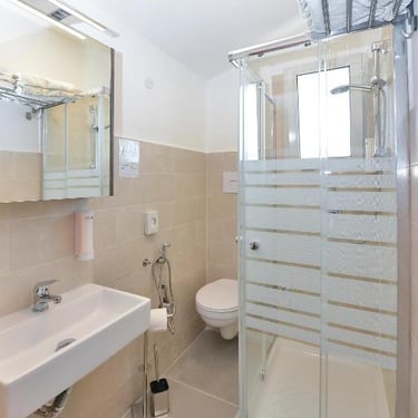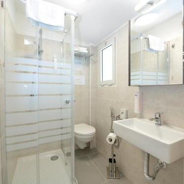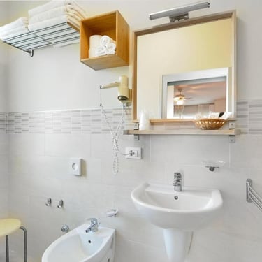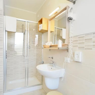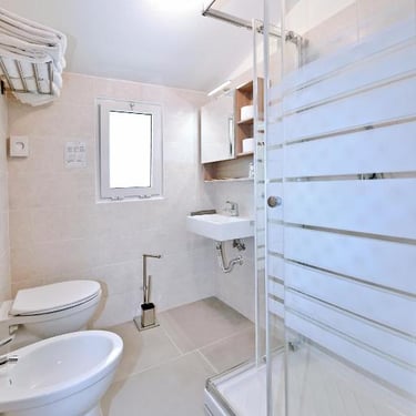Dotate di balcone, aria condizionata autonoma, TV, cassaforte e bagno privato rinnovato con box doccia e asciugacapelli.