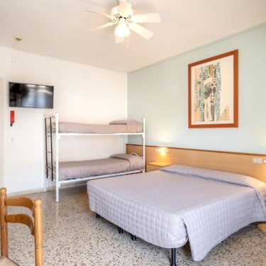 Camere con letto matrimoniale e letto a castello.