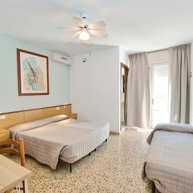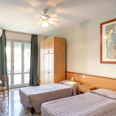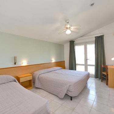 Camere con letto matrimoniale e terzo letto singolo (possibilità di tre letti singoli).